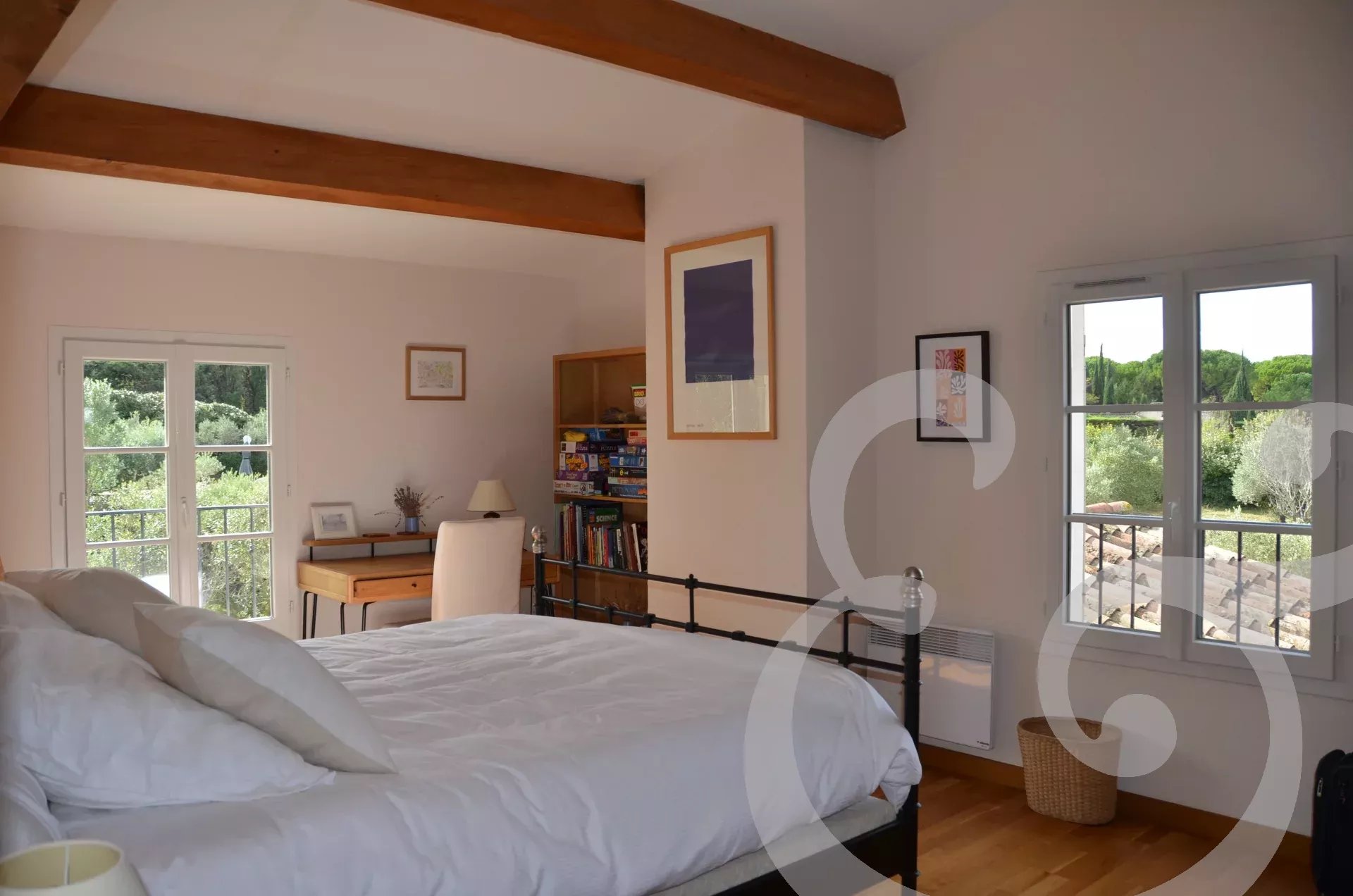 In Eygalières, one of the most sought-after addresses in the Alpilles, lies an exceptional 280 m² property, where every space has been designed to celebrate light, easy living and Provencal elegance. Nestled in unspoilt surroundings, this singular residence combines architectural refinement, breathtaking views and the Mediterranean art of living with rare precision. A subtle, luminous and resolutely harmonious interior The house opens onto perfectly orchestrated volumes bathed in omnipresent natural light. Carefully selected materials combine with the warm tones of Provence to create a soft, hushed atmosphere. Comprising seven main rooms, it offers five bedrooms, as well as three shower rooms and a bathroom, all equipped with toilets - an ideal layout for welcoming family and guests in absolute comfort. The reception rooms, both elegant and convivial, invite you to relax and contemplate. Everywhere, the surrounding nature seems to enter the house, creating a perfect continuity between inside and outside. A beautifully landscaped estate The 3,773 m² garden has been designed in the spirit of the finest Provençal properties: century-old olive trees, Mediterranean species, a play of plant textures and controlled perspectives create a lively setting that changes with the light and the seasons. The large south-facing terrace, shaded by an arbour, becomes the setting for long lunches and balmy summer evenings. Below, the majestic 15 × 5 m swimming pool and pool house face an unrivalled panorama of the Alpilles. The view unfolds, wide and open, like a natural tableau that you never tire of admiring. A property of authentic prestige Secure and perfectly maintained, this home offers a rare quality of life, driven by absolute calm, generous volumes and a perfect symbiosis of nature and architecture. Ideally located, it is the ideal address for owners looking for an intimate, elegant and authentic setting in the heart of one of the most emblematic villages in the South of France. A rare opportunity in the Alpilles The unique combination of location, quality amenities and exceptional views makes this property a rare signature on the high-end market. A home capable of seducing the most demanding connoisseurs, whether as a main residence or a holiday home. Ref. V02171